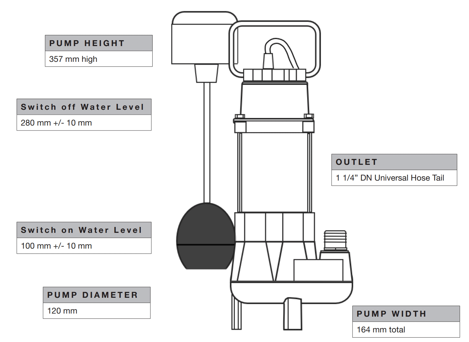 - Includes 1¼” hose tail adaptor