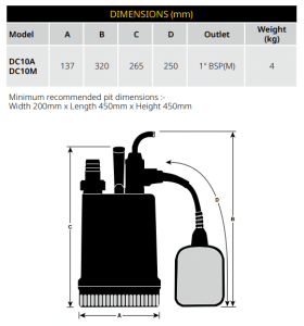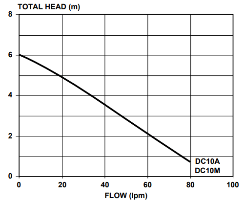 DC10 models are able to pump clean water of neutral PH containing up to 10% of small soft organic solids (<10mm OD )