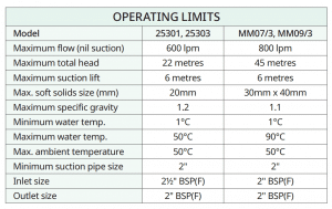 - Self-priming action allows the pump to prime without the need to fill the pipe and to be operated without a foot value to reduce the risk of blockages.