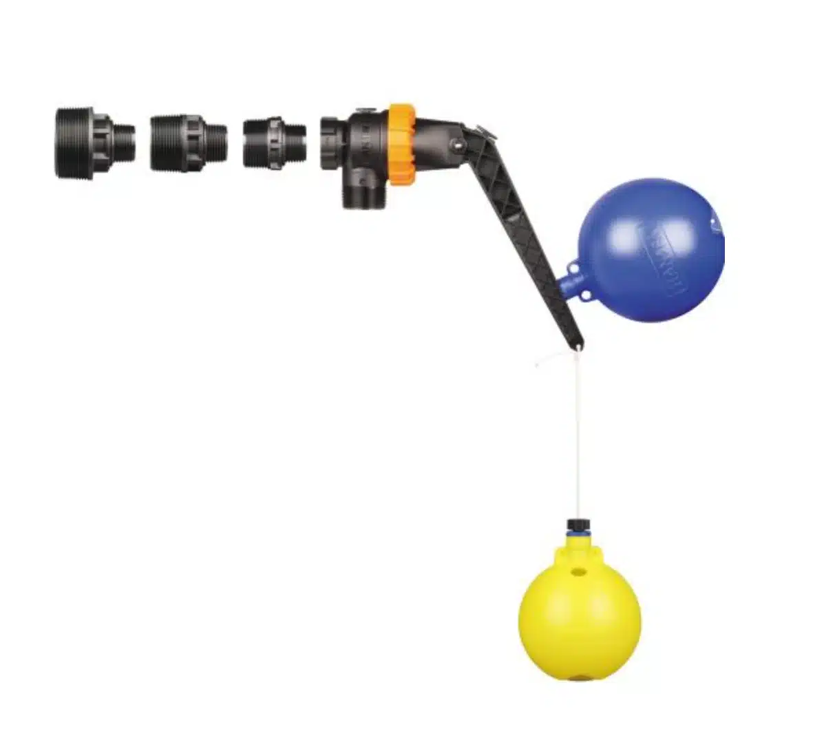 - Valve supplied with glass fibre reinforced nylon valve body and 32, 40, 50mm standard adaptors, leveller control, 115mm weighted HiViz Threaded Ball, 140mm blue threaded float, 2.5 metre cord.