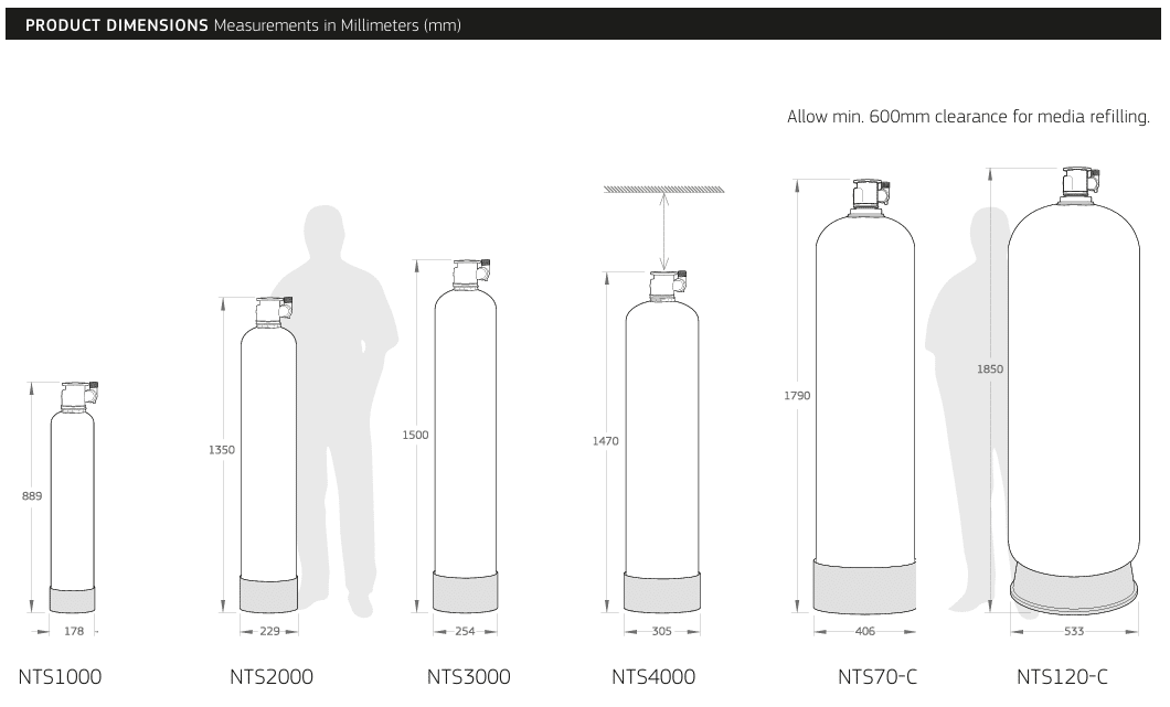 Water with a pH level below 6.5 could be acidic, and corrosive. Acidic water leaches metal ions such as iron, manganese, copper, lead and zinc from pipework. This in turn will elevate levels of toxic metals, cause damage to plumbing and cause aesthetic problems such as a metallic taste or a blue-green stain on surfaces. The best way to treat the problem of low pH water is with the use of a NTS or NTX Neutraliser. The media slowly dissolves as the water passes through the bed, raising the pH level to 7 or above. As the neutralising media is absorbed, periodic topping up is necessary. The lower the pH, the faster the media will be depleted and the longer the contact time required. The system should be sized according to the pH level and the flow rate required, contact Puretec for a recommendation. Due to the nature of the upflow system, no electricity or backwashing is required. NTX systems have the added benefit of a blending/mixing valve to further adjust the pH of the water. IMPORTANT NOTE : Since the neutraliser media dissolves as it elevates pH level, it will increase the hardness of your water. Installation of a water softener may be necessary if the hardness becomes a problem.