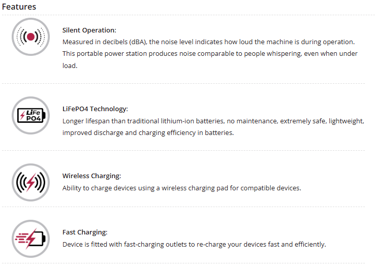 - Convenient power anywhere: Whether you’re camping, travelling or at a market stall, enjoy reliable and portable power without noise